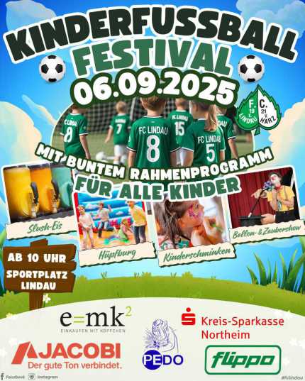 Auf dem Sportplatz Lindau erwarten euch spannende Spiele der Nachwuchskicker – und ein buntes Rahmenprogramm für alle Kinder: