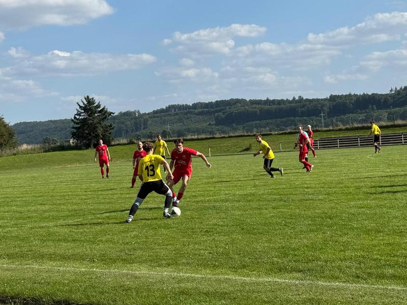in der 6. Minute ein Lattenschuss von Marvin Kautz. In der 10. Minute das 1:0 durch Nico vom Hofe. Das 2:0 folgte in der 15. Minute durch Lucas Jung. In der 31. Minute versenkt er dann zum 3:0. Bis